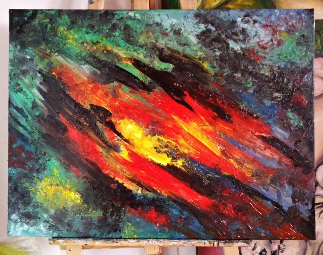 Kompozycja Abstrakcyjna- obraz olejny na płótnie o wymiarach 80cm x 60cm.Namalowany prze zemnie w Czerwcu 2018 w stylu ekspresjonizmu abstrakcyjnego. Obraz idealnie nadaje sie do biur i domów prywatnych. Boki obrazu zamalowane w kolorach obrazu. Cena obrazu 1000 PLN. Obraz dostępny na mojej stronie internetowej www.iobrazy.com.pl w zakładce Sprzedaż. Milena Olesinska